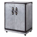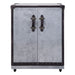 This Brancaster wine cabinet has a steamer trunk design that's as functional as it is handsome. The aluminum exterior is punctuated with top grain leather trim, with nailhead accents at the corners and edges. Pull the soft, sturdy leather handles to reveal two storage doors and a spacious interior with multiple storage compartments for bottles, barware, and accessories. Locking casters makes it easy to open and close the cabinet while keeping delicate items safe.