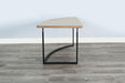 - A blend of a natural wood top and minimalist black metal frame creates a sleek, sophisticated look.