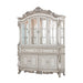 Exclusively designed and filled with romantic spirit, this hutch and buffet with oversized crown and golden ivory finish. This stylish and detailed collection is ideal for a large gathering and will add elegance to any dining room Decor.