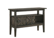 The Gulliver Dining Room Server/Buffet in rustic brown combines functionality with timeless design, making it a perfect addition to your home. This server cabinet is crafted from durable solid rubberwood, manufactured woods, and acacia wood veneers, ensuring long-lasting quality. The multi-step rustic brown finish highlights the intricate wood grain patterns, with subtle notes of gray and charcoal brown adding a touch of sophistication. The design features clean lines and the warmth of distressed wood, seamlessly blending contemporary sophistication with traditional rustic elements. Two X-pattern sliding barn doors provide easy access to ample storage space, perfect for storing china and serving ware, while open shelves offer additional display options. The versatile style of this piece also makes it suitable for use as a TV console or an entryway cabinet. Choose the Gulliver Dining Room Server/Buffet for a stylish and practical storage solution that enhances any space.