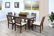 This elegant piece seamlessly combines a rich, coffee-inspired hue with the timeless beauty of Mahogany wood, creating a warm and inviting centerpiece for your dining area. The table features a convenient extension leaf, providing flexibility for accommodating gatherings of various sizes. Its unique shaped legs add a touch of sophistication, making a statement in any dining space.