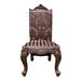 KD, Armless Chair • Padded SEAT & BACK Cushion, Nailhead Trim • BACKREST (Without Button): Scrolled Crown, Floral Fabric Inside and Vintage 2-Tone Brown PU Outside • SEAT: Striped Fabric & Scalloped Apron • Wooden Cabriole Legs w/Scrolled Motifs (Poly Resin with Antique Contrast Finish)