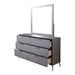 The Kailani 2 Piece Dresser and Mirror Set is a stunning combination of modern design, durability, and eco-friendly craftsmanship, making it an elegant addition to any bedroom. This set includes a dresser and mirror, both expertly crafted from a blend of solid rubberwood, engineered wood, and eco-friendly decorative laminate. The durable construction ensures the furniture maintains its beauty with minimal maintenance, offering superior resistance to scratches, moisture, and stains. The modern minimalist design, featuring clean lines, a sleek silhouette, and a chic ribbed texture, is enhanced by slim metallic handles and tapered legs, adding a sophisticated yet functional touch to your space. The dresser’s textured drawers, wrapped in luxurious 100% Polyester Velvet and accented by gleaming gold pulls and angled legs, bring a touch of glamour to the room. The low-distortion mirror offers crystal-clear reflection, combining both function and elegance. Thoughtfully designed for seamless form and function, the spacious drawers glide effortlessly on full-extension slides and are reinforced with durable dovetail joinery, ensuring smooth operation and lasting strength. The Kailani Dresser and Mirror Set is a perfect blend of style, function, and sustainability, making it a standout choice for your bedroom.