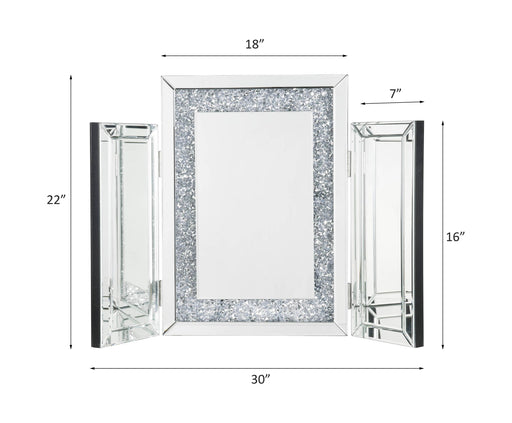 ACMEDisplay your dazzling sense of style by topping your vanity with the Nysa tri-fold mirror. This trifold mirror features a beveled mirrored frame wi...