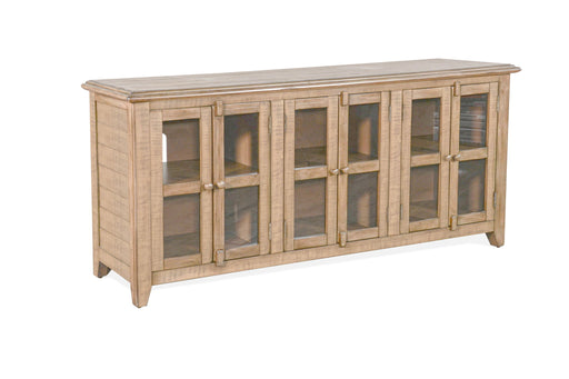 Sunny DesignsThis TV console was built with rough-sawn mahogany solids and veneers, glass doors, and adjustable shelves. Marina - 70" TV Console - Beach Pebble7...