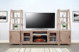 120" Media Wall With Electric Fireplace - Light Gray / Wheat