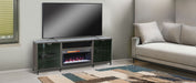 70" Media Console With Wood Electric Fireplace Insert - Black Oak Melamine