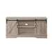 Enjoy a warm and cozy family TV time with this cottage-style TV satnd. The rustic casegood has two sliding barn doors with classic Z overlay and pull handles. Metal sliding hardware is coated with finish, providing smooth operatin and chic look. Two media compartments with back holes for cable managemen help you organize all your television equipment, while four covered storage spaces behind doors preserve your CD collection or personal items.