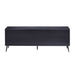 This Colson TV stand is the perfect addition to your home. The black finish matches any decor and gives your space a modern feel. It has rattan door front inserts, giving it a light and airy feeling. The legs are tapered, for a modern flare. Featuring four open compartments that provide easy access to all of your media devices at once so you can easily change batteries or other components without having to move anything out of place.