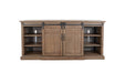 This modern 78" entertainment stand will complement the furnishings in your living room. The ideal component for all of your storage needs, complete with sliding barn cabinet doors, wire management is made simple by cutouts in the rear. Its easygoing character is sure to enhance the look of any room.