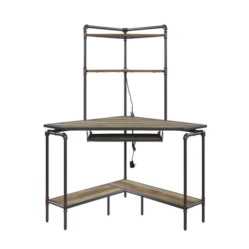 ACMEDeliz - Desk - Weathered Dark Oak & Dark Bronze - 36"Product Features Corner Computer Desk with Hutch Storage: Open Compartments, Keyboard Tray...