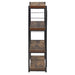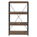 The Bob bookcase is the third additional to this office collection. It features 4 shelves on being the top and "x" back stretcher to tie into the look as well as create a sting sturdy book case. Like the desk, weathered oak is combined with black metal to create a pleasing combination.
