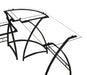 Corner Computer Desk Orientation: "L" ShapeX-Shape Metal Frame BaseRectangular Table Top w/Tempered GlassKey Board Tray IncludedComputer Holder Included