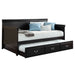 The Bailee daybed transitional collection is a great option for your guest room. Its multi-functional use offers comfortable lounging and/or cozy sleeping areas. Features streamlined panel back, side arms and roll-out trundle bed in rich finish. Carefully crafted from selected woods and veneers for strengths and durability, its amazing finish will match any interiors.
