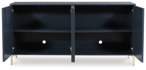 Signature Design by Ashley®This accent cabinet offers abundant storage with casually cool style and versatility. Its four doors, accented with fluting and goldtone metal pull...