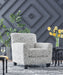 Add visual variation to your contemporary hideaway with this accent chair. Its geometric upholstery caps off your aesthetic with a welcome pop of pattern. In warmly neutral hues, the eye-catching chair stays versatile enough to pair with existing pieces. Stage it with another chair to create a cozy-chic conversation area, or tuck it in a corner for a stylish spot to rest and relax solo.