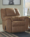 Rock the cool look of leather and the warm feel of fabric with this rocker recliner. Sporting sumptuously thick cushioning, fashion-forward jumbo stitching and a richly tailored aesthetic, this smartly priced recliner with gentle rocking motion is a bestseller for good reason.