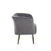 With its transitional design, the Reese accent chair is sure to please. Whether you're going for a classic traditional style or a more modern look, its versatile design ensures that it can fit within various aesthetic styles. It features a barrel backrest with channel tufting. Its beautiful gold metal spindle legs and velvet upholstery adds a flair of elegance and sophistication. Available in two colors, burgundy and gray velvet.