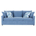 - Cozy-Easy Care Fabric: 100% Polyester slate blue upholstery is carefully tailored and complemented with floral accent pillows.