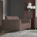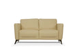 Assembled, Loose Back & Tight Seat Cushion (2+2) •• CONSTRUCTION •• SEAT: Webbing; Inside Frame: Wood, Contrast Tone Stitching • BACKREST: Loose Cushion • ARMREST: Track Style, Arm Size: 5 Inches • Metal Bracket LEG: Chrome Finish; Leg Size: 6 Inches ••• Material: Leather (Solid Pattern) • Pillow NOT Included