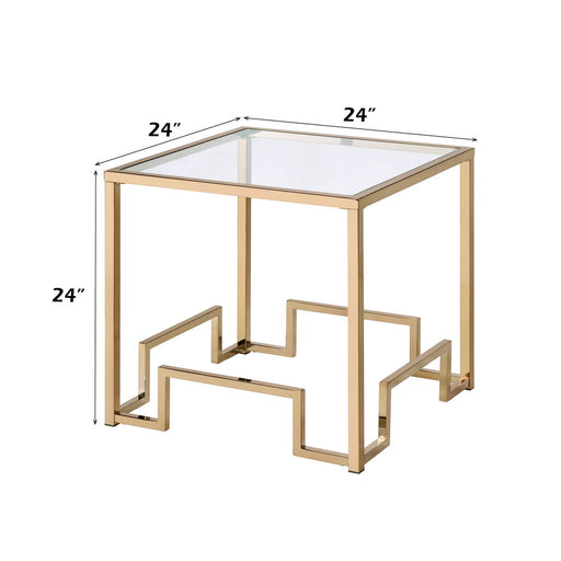 ACMEDamien - End Table - Clear Glass & ChampagneProduct Features KD, Square Table w/Geometric Metal Base Top: 5mm Clear Tempered Glass Frame: Champ...
