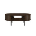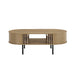 Discover the perfect blend of style and functionality with the Brax Coffee Table/Cocktail Table. This sleek and sustainable table is constructed from manufactured wood covered in durable, environmentally friendly decorative laminate. The 47" table offers ample top surface area for drinks and decoration, while the lower storage shelf is perfect for keeping reading materials, remotes, and more within easy reach. The black metal legs and rounded edges add a contemporary touch, while tambor style moldings add character and distinction. The light, natural beige finish complements a variety of décors, making this table a versatile addition to any living space.
