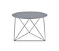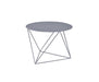 Bring dimension, depth and distinctive visual appeal with this modern geometric design. The accent table boasts a cool and fun look. Round table top paired with irregular metal base adds a uniquely attractive contrast to this table. It's powder coating provides a beautiful, durable finish and supports four different colors including: blue, yellow, white, gray. Use the Epidia Accent Table to achieve a youthful and bright decor scheme