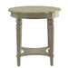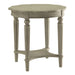 The French country-inspired Fordon occasional table is gracefully designed and made from quality materials. Scalloped round table top, turned legs and a bottom shelf, each piece is carefully crafted while superb functionality is kept in mind. This occasional collection is available in both of coffee and end table, with 3 inviting antique colors of green, slate and white.