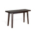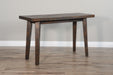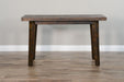Made with rough sawn mahogany solids and veneers. This sofa table set is sleek, modern, and yet elegant. Constructed with butcher block planking, and finished in Dark Toast.