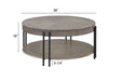 Elevate your living space with this contemporary cocktail table set, designed to blend seamlessly with modern and minimalist interiors. Each piece in the set features a sophisticated round tabletop with a subtle, textured finish that exudes understated elegance. The sleek black metal legs provide a striking contrast, offering both durability and a touch of industrial chic. The integrated lower shelves offer additional storage or display space, perfect for books, decorative items, or everyday essentials. With its clean lines and versatile design, this set promises to enhance your living room’s ambiance, providing a stylish and functional focal point for any gathering or daily use.