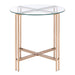 You're going to love this Veises end table. It's got gold legs and a clear glass tabletop, so it's chic and classy without being too over-the-top. And it's round, so it'll fit right in with the rest of your decor! This is a great piece for your living room or bedroom.