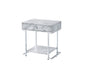 Use this brilliant work to add extra storage spaces while enhance your room decor. Metal sled base creates a modern silhouette of sleek, straight lines, with chrome finish for added subtle sheen. White faux marble table top and bottom shelf feature beautiful textures, providing a perfect place to display your personal style. There is also a storage drawer that hold odds and ends for keeping table top clean and tidy.