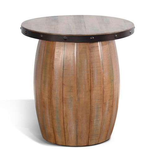 Sunny DesignsIntroducing our distinctive end table, a statement piece that effortlessly merges functionality with contemporary design. Featuring a unique slatte...