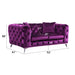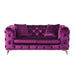 Elegant and eye-catching, the beautiful Atronia loveseat is the perfect addition to any space. Chic button tuft design with bright blue cover, strength, and beauty guaranteed with sturdy wood frame and chrome legs. This loveseat is bound to be the conversation piece.