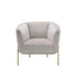 This beautiful Carlson accent chair is the perfect addition to any contemporary home. Its luxurious velvet fabric and comfortable barrel backrest add sophistication to any room. Featuring elegant chrome legs and high-shelter armrests that will make you feel like royalty. The foam seat ensures that you will always be sitting in luxury. Available in two colors gray and beige.