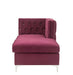 Nothing screams luxury like this Jaszira modular upholstery group. Each piece is enveloped in a luxurious velvet upholstery and showcasing button tufting, and a nail head trim accent for a tailored touch. Foam padding offers comfortable cushioning. Design the best configuration for your living space, this group has enough seating space for all your guests to comfortably lounge.