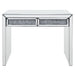 - Features: Mirrored Top, Mirrored Sled Base, Front Drawers w/Faux Diamonds Inlay & Clear Glass (Open Base)