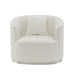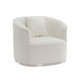 Unwind and rest when seated on this luxurious beige chenille Odette chair. This lovely chair is just the thing to inject drama into your living space. The plush seating offers countless hours of relaxation. The unique barrel shape immediately commands attention, and the brushed chrome stainless steel detailing finishes off the base in contemporary panache.