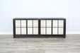 This sophisticated piece features a sleek finish and two large glass-front doors, each divided into eight panes, creating a classic and timeless look. With spacious shelving behind the glass doors, this cabinet is ideal for displaying your favorite decorative items, books, or fine china. Crafted from high-quality materials, it ensures durability and stability, making it a long-lasting addition to your home decor. The clean lines and black finish make it a versatile piece that can complement various interior styles, from modern to traditional.