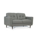 Assembled, Loose Back & Tight Seat Cushion (2+2), Button Tufted •• CONSTRUCTION •• SEAT: Webbing; Inside Frame: Wood, Contrast Tone Stitching, Box Cushion • BACKREST: Button Tufted Cushion • ARMREST: Flared Style, Arm Size: 5 Inches • Wooden Tapered LEG: Dark Walnut Finish; Leg Size: 6 Inches ••• Material: Leather (Solid Pattern) • Pillow NOT Included
