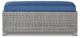 Indulge in backyard bliss. This outdoor bench has a straightforward sense of style with its light gray resin wicker and wood-look finish. Blue high-performance Nuvella+™ fabric covers the cushioned top, weathering the elements and keeping your aesthetic casually cool.
