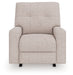 Sincere in its styling, this recliner marries classic function with modern design elements for truly transitional appeal. Its track arms lend a contemporary vibe, while easy pull tab reclining ups the comfort level. And with the recliner's goes-with-anything neutral upholstery, styling is made simple. All that’s left for you to do is sit back and relax.