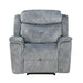 KD Back, Motion Reclining Function • Tight Back & Seat Cushion (1+1) • Features: Buttonless Tufted • CONSTRUCTION •• SEAT: Pocket Coil, Inside Frame: Wood, Foam • BACKREST: Tight Cushion • ARMREST: Pillow Top • Metal Base with Reclining Motion: External Latch Pull Handle (Outside Armrest), Cenro Mechanism ••• Material: Fabric () • NOT Included: Pillows/Console •