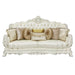 Adara - Sofa With 7 Pillows - Pearl White Synthetic Leather & Antique White