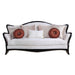 Popularized the Louis XV-era, cabriole style furniture creates a regal look, with its exposed wooden frame, and tight cushioning. This formal Nurmive collection adds a sense of provincial elegance in neutral beige upholstery. The backrests are enhanced with button tufting and the wooden frame is accentuated with gold trim. The included throw pillows are in bold and light hues to offset the pieces and bring them to life.