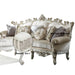 Inspire your home and create an upscale atmosphere with the Picardy II sofa. This sofa adds classic style to any sitting area featuring a traditional handcrafted design. This luxurious sofa is upholstered in a beautiful light floral and patterned fabric and matching chairs with button tufted backs. Featuring a solid wood frame in antique pearl and gold brushed finish, this collection is guaranteed to be the highlight of any home.