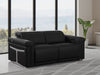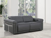 Practical convenience comes with built-in USB charging ports to keep your devices powered while you unwind. Finished with stainless steel legs in a sleek jet finish and complemented by stainless steel accent hardware in matching jet on each side, this loveseat blends contemporary elegance with functional luxury.