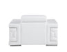 Exuding stylish form and comfort, this sofa set is inspired by modern and Italian design. The gorgeous, stainless steel chrome legs and trim add a beautiful contrast to the Italian Genuine leather upholstery. The cushions easily seat three people in optimal comfort, with the width of the armrests also offering a functional purpose as a perfect place for resting your favorite drink or a book. - Kiln-Dried hardwood frame with reinforced corner blocks - Soft-padded frame made with polyurethane foam wrapped in polyester fiber - 8-gauge sinuous spring construction - 3-layer high-density foam cushioning - Low profile solid stainless-steel leg Starting from the design to the finished product, each step of the production process is checked rigorously for quality. The selection of Genuine leather for the upholstering and solid Brazilian wood for the sofa frame is done with utmost respect for the finest raw materials.
