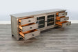 Elevate your living space with our Wood TV Console featuring six drawers, a perfect marriage of style and functionality. Crafted from high-quality wood, its timeless design effortlessly complements any decor. The six spacious drawers provide ample storage for your media essentials, keeping your space tidy and organized. The sturdy construction ensures durability, while the distressed finish adds warmth and character to your room.