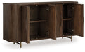 Function and style merge perfectly with this accent cabinet. Exquisitely crafted with mango wood, it makes a great case for refined contemporary design. Adding to its allure, the fluted door fronts and gracefully curved side detail keep the look cool with a mid-century vibe. The doors open to reveal interior shelves, ideal for hiding clutter or whatever you choose in fine fashion.
